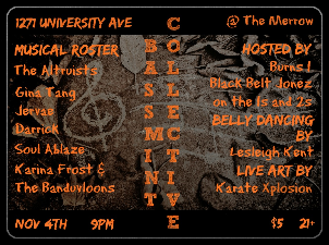 Karina Frost & The Banduvloons / Soul Ablaze / Jervae, Gina Tang & Dairrick / The Altruists / DJ Blackbelt Jonez / Belly Dance Performance By: Lesleigh Kent / Live Art By: Karate Xplosion